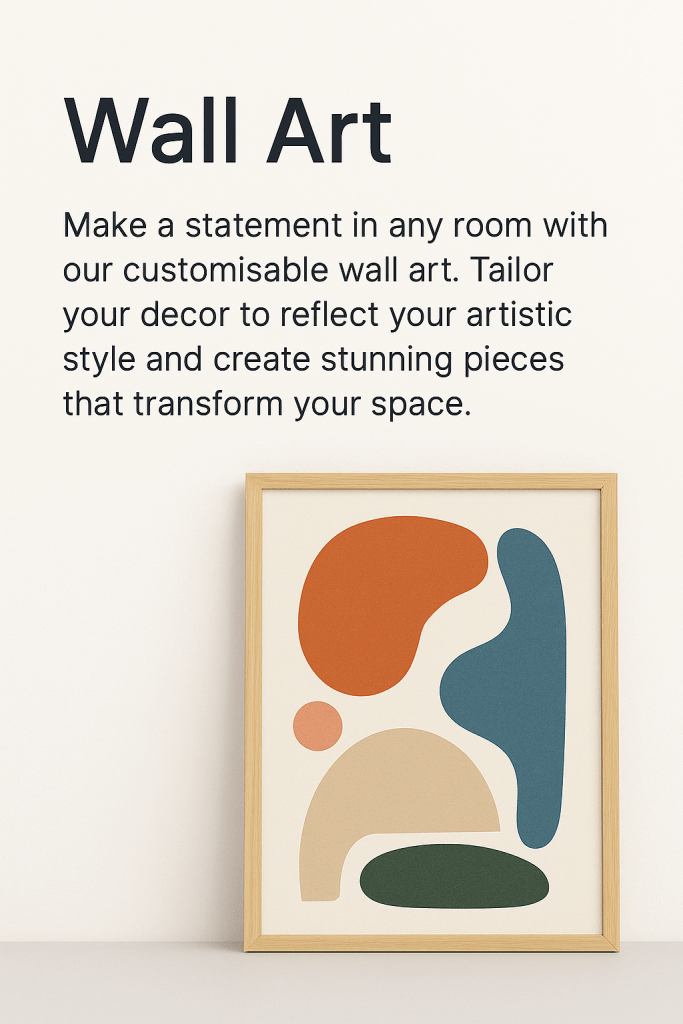 Our custom wall art is printed using high-quality, vibrant printing techniques to ensure every detail stands out beautifully. Whether you’re decorating a room, gifting someone a personalised keepsake, or bringing your artwork to life, each print offers premium quality, rich colour, and a lasting finish. Every piece feels intentional, expressive, and crafted just for you.